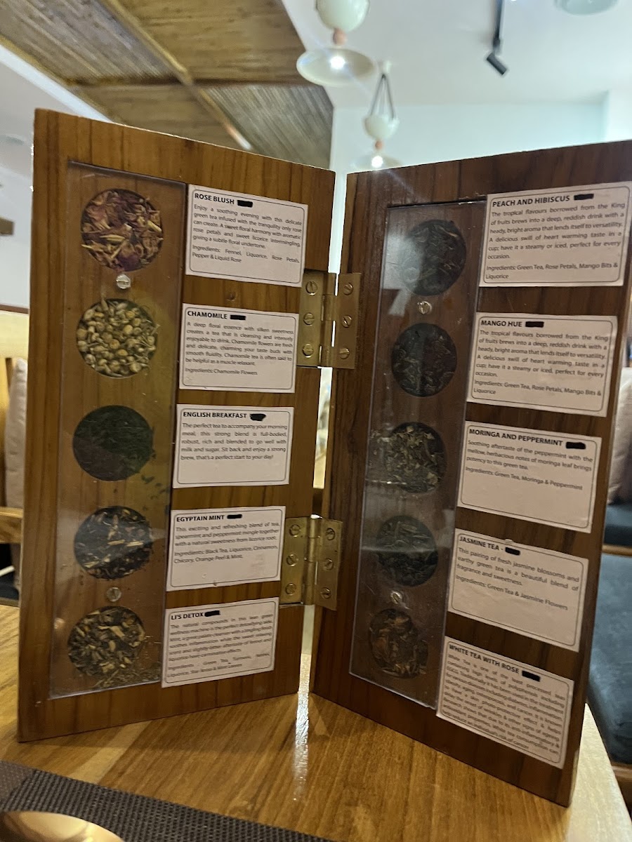 Green Tea Jasmine Green Tea Fennel Green Tea Moringa & Peppermint Tea Mango Hue Tea Peach & Hibiscus Tea Li’s Detox Tea Skin Glow Tea Jasmine Pearl Tea